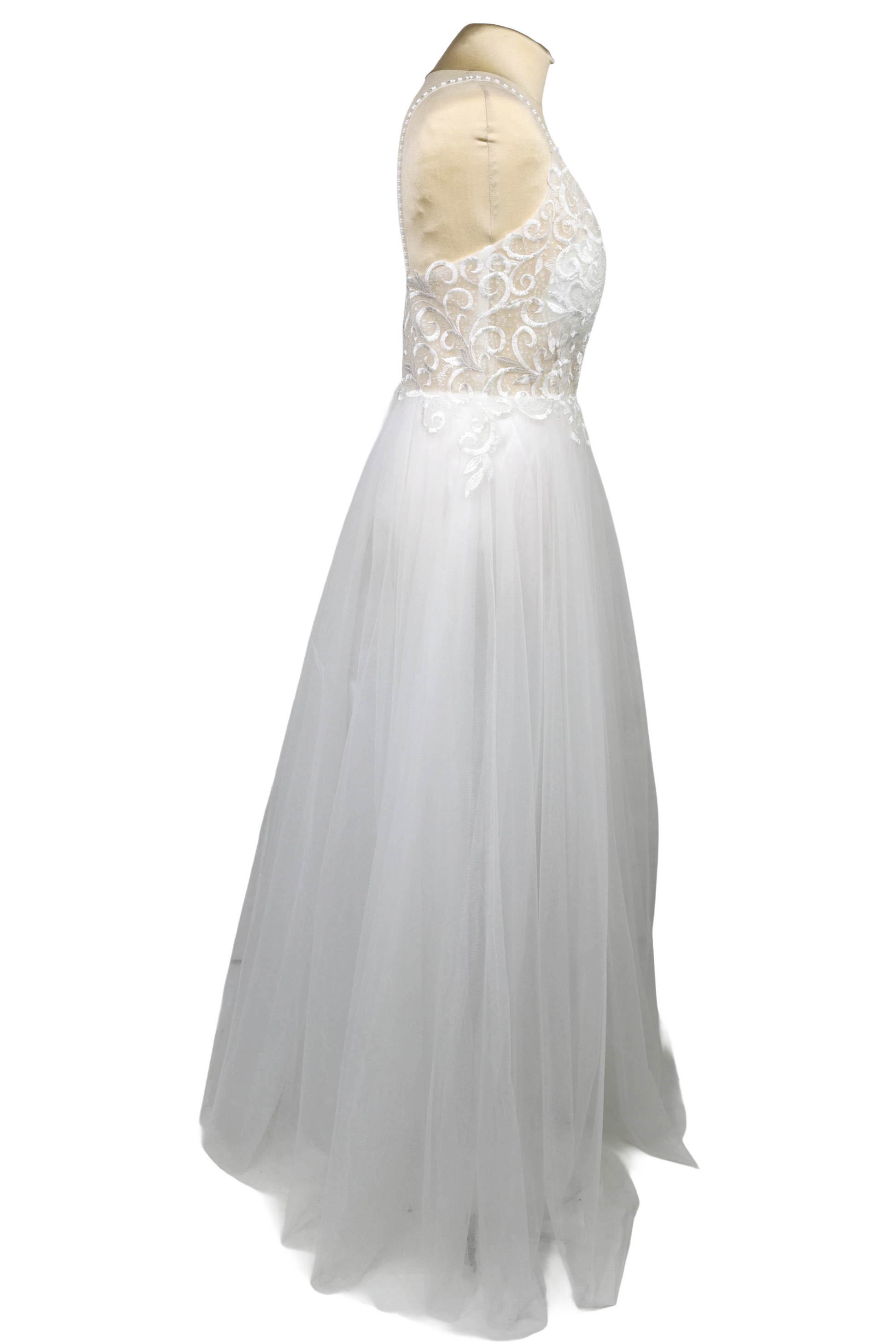 O Vestido Guimarães é a personificação da elegância e do romantismo, digno de uma verdadeira princesa. Confeccionado em tule leve, este modelo encanta pelo seu volume suave e pelo seu movimento delicado.